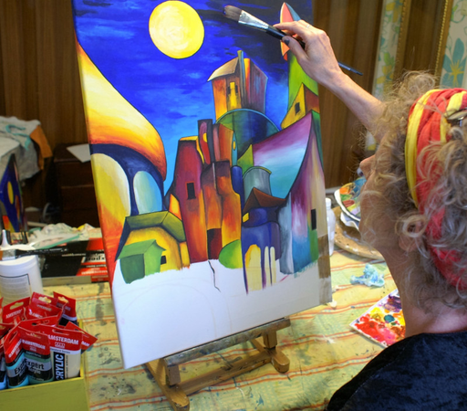 Ik vind het fijn als alles in mijn leven kleurrijk is. Niet alleen als ik schilder, maar altijd, zoals bloemen in een tuin. In mijn huis heeft elke kamer een andere kleur. Ik heb kleuren nodig en ik heb er veel nodig, maar ze moeten in harmonie blijven. Als ik schilder, beperk ik soms mijn kleuren tot slechts drie, alleen maar voor mezelf om in dezelfde stemming te blijven tijdens het schilderproces. Kleuren helpen me om te leven en laten me leven.